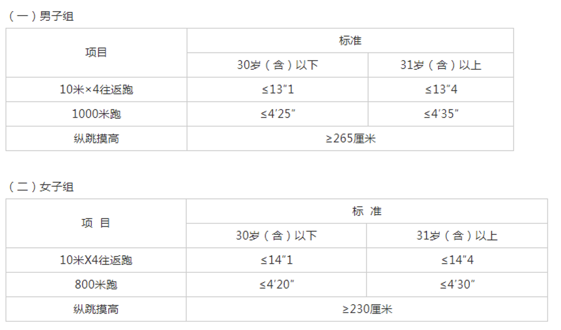 體能測(cè)評(píng):不同省市有所區(qū)別,有的先體能再面試(如浙江、山東、北京等);有的先面試后體能(如上海、云南等地,根據(jù)崗位人數(shù)按照1:2的比例,按照綜合成績(jī)高低,進(jìn)行體能測(cè)評(píng))。