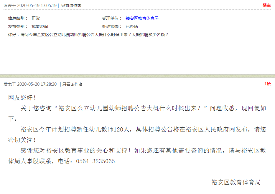 關(guān)于您咨詢“裕安區(qū)公立幼兒園幼師招聘公告大概什么時(shí)候出來(lái)?”問題收悉,現(xiàn)回復(fù)如下: