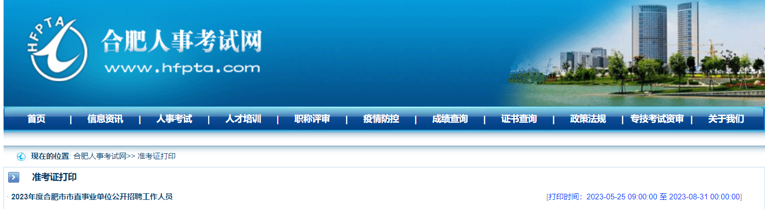 準(zhǔn)考證打印時(shí)間:可于5月25至5月27日從合肥人事考試網(wǎng)自行下載并打印筆試準(zhǔn)考證。