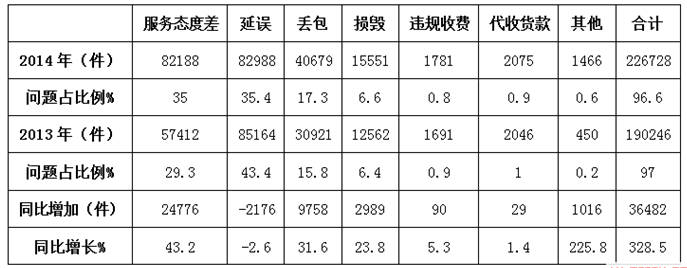 2013-2014快遞業(yè)務有效申訴問題